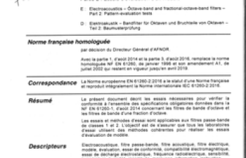 Norme NF EN 61260-2. Électroacoustique. Filtres de bande d'octave et de bande d'une fraction d'octave. Partie 2 : Essais d'évaluation d'un modèle.