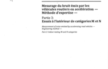 Norme ISO 362-3. Mesurage du bruit émis par les véhicules routiers en accélération. Méthode d'expertise. partie 3 : Essais à l'intérieur de catégories M et N.