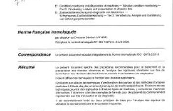 Norme NF ISO 13373-2. Surveillance et diagnostic d'état des machines. Surveillance des vibrations. Partie 2 : traitement, analyse et présentation des données vibratoires