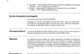 Norme NF EN ISO 16283-3. Acoustique. Mesurage in situ de l'isolement acoustique des bâtiments et des éléments de construction. Partie 3 : isolement aux bruits de façades