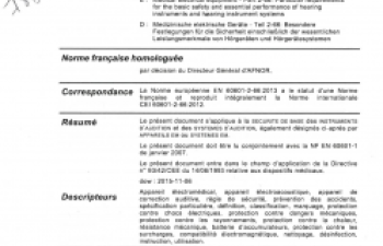 Norme NF EN 60601-2-66. Appareils électromédicaux. Partie 2-66 : Exigences particulières pour la sécurité de base et les performances essentielles des instruments d'audition et systèmes d'audition