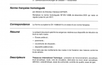 Norme NF EN 14388. Dispositifs de réduction du bruit du trafic routier. Spécification