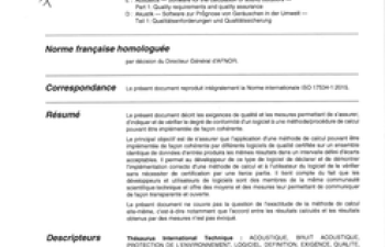 Norme ISO 17534-1. Acoustique. Logiciels de prévision de bruit dans l'environnement. Partie 1 : Exigences de qualité et assurance qualité.