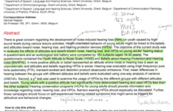 Hearing in young adults. Part 1 : the effects of attitudes and beliefs towards noise, hearing loss end hearing protector devices