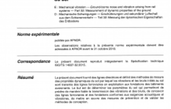 Norme ISO/TS 14837-32. Mechanical vibration. Ground-borne and vibration arising from rail systems. Partie 32 : Measurement of dynamic properties of the ground.