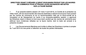 Directives visant à réduire le bruit sous-marin produit par les navires de commerce pour atténuer leurs incidences néfastes sur la faune marine