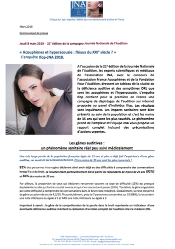 Sondage réalisé par l'IFOP pour la 21ème édition de la Journée Nationale de l'Audition (8 mars 2018) sur 1003 personnes à l'aide d'un questionnaire auto administré en ligne. -