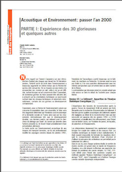 Acoustique et Environnement: passer l’an 2000 PARTIE I : Expérience des 30 glorieuses et quelques autres