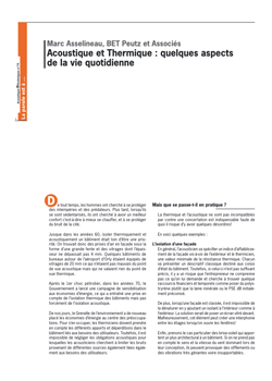 Acoustique et Thermique : quelques aspects de la vie quotidienne