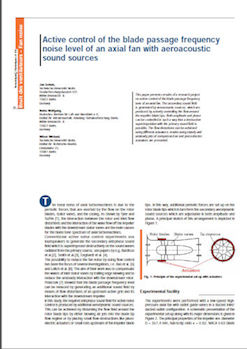This paper presents results of a research project on active control of the blade passage frequency tone of an axial fan. The secondary sound fi eld is generated by aeroacoustic sources, which are produced by actively controlling the fl ow around the impeller blade tips. Both amplitude and phase can be controlled in such a way that a destructive superimposition with the primary sound fi eld is possible. The fl ow distortions can be achieved using different actuators; results using steady and unsteady jets of compressed air and piezo-electric actuators are presented. -
