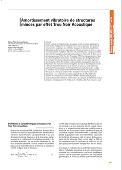 Dans le contexte de l’ingénierie vibro-acoustique et dans le secteur des transports en particulier, l’allègement des structures est un enjeu majeur pour des raisons de consommation énergétique. Les méthodes classiques de réduction des vibrations, utilisant des revêtements visco-élastique sont efficaces et simples de mise en oeuvre mais s’avèrent alors inadaptées. Cet article est une synthèse des principaux résultats des recherches engagées au Laboratoire d’Acoustique de l’Université du Mans ces dix dernières années sur l’effet Trou Noir Acoustique (TNA). Ces travaux s’inscrivent dans une démarche globale du laboratoire visant à développer des stratégies alternatives de conception de structures (poutres, plaques, coques) à la fois raides, légères et non résonantes. L’effet TNA est basé sur les propriétés de propagation des ondes de flexion dans des structures minces inhomogènes. Sa mise en œuvre typique consiste à diminuer localement l’épaisseur de la structure en suivant un profil polynomial revêtu d’un film viscoélastique. L’inhomogénéité locale résultante conduit à piéger les vibrations et à les dissiper particulièrement efficacement. Des développements théoriques et numériques combinant des descriptions ""en ondes"" et ""en modes"" aboutissent à une compréhension physique approfondie de l’effet. Différentes variantes de conception pouvant associer cet effet à d’autres effets physiques conduisent à des démonstrateurs expérimentaux dans lesquels la réduction de niveaux vibratoires est classiquement de l’ordre de 10 à 15 dB au-delà d’une fréquence seuil. -