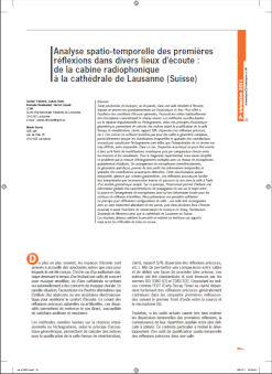 Toute production de musique, ou de parole, dans une salle destinée à l’écoute, impose en amont des questionnements sur l’acoustique du lieu. Pour offrir à l’auditeur des conditions d’écoute optimales, l’acousticien utilise habituellement des descripteurs caractérisant le champ sonore. Les méthodes usuelles basées sur la réponse impulsionnelle ou l’échogramme, selon des principes d’acoustique géométrique, permettent de calculer des indices visant la qualification de la salle (temps de réverbération, clarté, rapport S/N, dispersion des réflexions précoces, etc.). Ces indices ne suffisent toutefois pas pour des salles à géométrie complexe, particulièrement lorsque les distributions temporelles et spatiales des contributions acoustiques constituant l’échogramme sont telles que l’interprétation de ce dernier est trop difficile, voire impossible. Dans ce cas, l’expertise acoustique ne peut être menée à bien qu’à l’aide de modélisations numériques puis par comparaison directe entre les mesures et les simulations. Pour le diagnostic expérimental, nous avons simplifié ce problème par la mesure d’échogrammes multiples avec un réseau de microphones spatialement distribués. Un arrangement de microphones omnidirectionnels, de géométrie spécifique, permet de tirer profit des informations temporelles et spatiales des contributions acoustiques détectées. Cette discrimination spatiotemporelle, obtenue par «chrono-goniométrie», des réflexions acoustiques facilite leur interprétation par reconstruction inverse du parcours du son dans la salle à l’aide d’un modèle géométrique simple. Sur ce principe, l’instrument permet d’obtenir une information globale des caractéristiques de propagation du son sur le trajet entre la source et l’arrangement de microphones ainsi qu’une information locale pour les surfaces de réflexion identifiées. Nous présentons une première validation du principe pour différentes configurations de salle : une salle-test rectangulaire avec ou sans traitement absorbant de ses parois, puis dans plusieurs lieux d’écoute musicale à savoir l’auditoire du conservatoire de musique de Vevey, l’auditorium Stravinski de Montreux ainsi que la cathédrale de Lausanne en Suisse. Les résultats obtenus valident le procédé et mettent en évidence ses apports mais aussi les difficultés de mise en oeuvre.