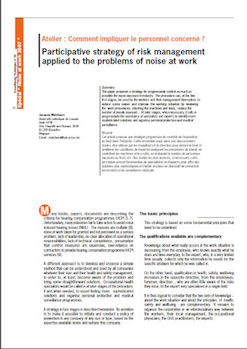 Atelier : Comment impliquer le personnel concerné ? Participative strategy of risk management applied to the problems of noise at work