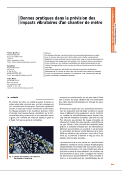 Les vibrations liées aux chantiers de métro sont susceptibles d’engendrer une gêne pour les riverains (via notamment le bruit solidien qui en résulte) mais présentent également un risque structurel pour les constructions, voire un risque de perturbation du fonctionnement des équipements dits sensibles. Pour toutes ces raisons, leur prévision et leur contrôle sont non seulement souhaitables mais également demandés par des maîtres d’ouvrage de plus en plus soucieux de préserver l’environnement et la santé au sens large. Après un bref rappel des spécificités des méthodes de prévision des vibrations engendrées par un chantier de métro, deux cas concrets et d’actualité sont présentés, à la fois sur l’estimation des vibrations d’un tunnelier et sur le contrôle temps réel des impacts à proximité d’équipements sensibles -