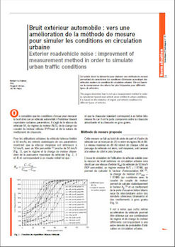 Cet article décrit la démarche pour élaborer une méthode de mesure permettant de caractériser les conditions d’émission acoustique des véhicules routiers en condition de circulation urbaine. Elle est basée sur la connaissance des allures les plus fréquentes pour différents types de véhicules. This pages describes how to set up a measurement method in order to caracterize typical road vehicle noise emitted in urban conditions. It is based on the statistics of engine and vehicle conditions for different types of vehicles. -