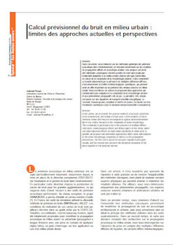 Dans cet article, nous revenons sur les méthodes générales de prévision acoustique dans l’environnement, en insistant notamment sur les modèles de propagation utilisés en acoustique urbaine. Une analyse succincte des méthodes «classiques» montre qu’elles ne sont sans doute pas totalement adaptées à un milieu urbain «dense» (de type centre-ville), en raison de la complexité de la morphologie urbaine. Cette complexité se traduit notamment par la présence de multiples réfl exions diffuses, d’encombrement et d’effets météorologiques spécifi ques, qui peuvent avoir un effet important sur la prévision des niveaux sonores en milieu urbain. Nous terminons cet article en proposant deux approches qui sembleraient plus adaptées à la complexité de la morphologie urbaine et aux phénomènes propagatifs mis en jeu. La première, très simple, est basée sur des équations de transport (modèle énergétique). La seconde, beaucoup plus complexe à mettre en oeuvre, est basée sur des résolutions numériques dans le domaine temporel (modèles ondulatoires). -
