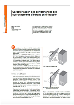 Le Centre d’Etude et de Recherche de l’Industrie du Béton a réalisé une étude des performances in situ des couronnements d’écrans routiers en diffraction, en comparant la méthode française non homologuée et la méthode basée sur la norme CEN/TS 1793/4 de décembre 2003. -