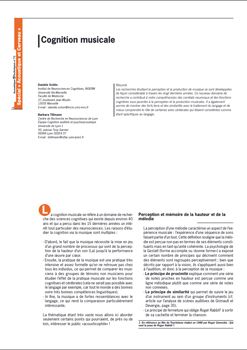 Les recherches étudiant la perception et la production de musique se sont développées de façon considérable à travers les vingt dernières années. Ce nouveau domaine de recherche a contribué à notre compréhension des corrélats neuronaux et des fonctions cognitives sous-jacentes à la perception et la production musicales. Il a également permis de montrer des forts liens et des similarités avec le traitement du langage et de mieux comprendre le rôle de certaines aires cérébrales qui étaient considérées comme étant spécifiques au langage -