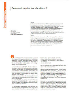 La description des vibrations donne les différentes grandeurs physiques permettant de les caractériser : accélération, vitesse et déplacement. Ainsi, trois familles de capteurs conduisent à la mesure des vibrations, et dans chaque famille, une revue des diverses technologies montre la variété des possibilités de captation. Le choix d’un capteur de vibration est fonction de nombreux critères métrologiques et doit tenir compte des conditions de mesure avec ses perturbations et son environnement physique. Les progrès scientifiques font évoluer sans cesse tous ces types de capteurs, leur intelligence, leur taille, leur coût… permettant ainsi de mettre la mesure des vibrations au service de l’amélioration de notre vie. -