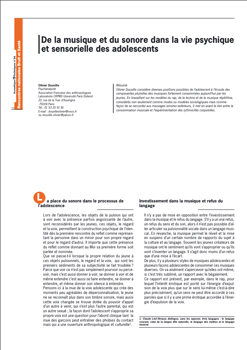 De la musique et du sonore dans la vie psychique et sensorielle des adolescents