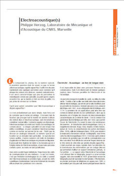 En composant le «menu» de ce numéro spécial, la première question était de savoir ce que ce terme «électroacoustique» signifie aujourd’hui. Il suffit d’en discuter rapidement avec quelques personnes pour constater qu’il évoque des notions très diverses, souvent contradictoires. Il est aussi caractéristique que peu de personnes le revendiquent comme une spécialité, au point que le congrès Acoustics’08, qui se tiendra à Paris au mois de juillet, n’a pas prévu de session sur ce thème. -