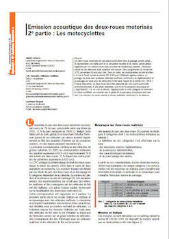 Emission acoustique des deux-roues motorisés. Première partie : les motocyclettes