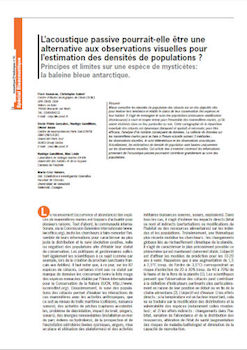 L'acoustique passive pourrait-elle être une alternative aux observations visuelles pour l'estimation des densités de population ? Principes et limites sur une espèce de mysticètes : la baleine bleue antactique