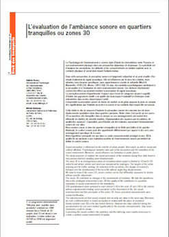 L’évaluation de l’ambiance sonore en quartiers tranquilles ou zones 30