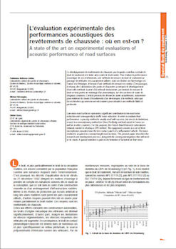 L’évaluation expérimentale des performances acoustiques des revêtements de chaussée : où en est-on ? A state of the art on expérimental evaluations of acoustic performance of road surfaces