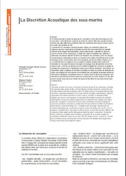 Cet article présente la démarche générale de conception en Discrétion Acoustique pour les sous-marins. Cette démarche comporte aussi bien les actions effectuées pendant la phase d’étude que celles effectuées pendant la phase de construction ainsi que les essais à quai et les essais d’acceptation en mer. La démarche de conception comporte plusieurs étapes qui consistent à allouer des exigences aux trois composantes principales du bruit d’un sous-marin (bruit de l’appareil propulsif, bruit d’origine hydrodynamique, bruit de plate-forme), à identifi er les types de sources de bruit et leurs importances, à établir des règles d’installation des matériels, à déterminer des niveaux objectifs de bruit et de vibrations des matériels à partir des niveaux de bruit rayonné contractuels du navire, et à respecter des règles d’architectures des circuits électriques et des circuits fl uides (tracé de la tuyauterie, vitesse des fl uides, fi xations, etc.). La conformité avec les exigences de conception est pilotée pendant toute la phase de fabrication en s’assurant du respect des règles de montage et du déroulement correct des essais à bord. Le but de ces derniers est de contrôler la rigidité des structures, la qualité de montage des suspensions et l’atténuation fournie par les liaisons élastiques. Pour illustrer ces dispositions visant à maîtriser la Discrétion Acoustique de toutes les phases de réalisation du navire, une prévision de bruit rayonné est présentée pour une situation acoustique donnée en précisant les différentes contributions prises en compte. Après la phase de conception, sera présenté le suivi effectué pendant la phase de construction, les essais réalisés à la mer ainsi que les travaux nécessaires au maintien du niveau de discrétion du sous-marin durant toute sa durée de vie. -