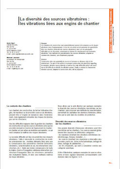 Les chantiers de construction sont potentiellement sources de nuisances ou de risques vibratoires dans l’environnement. Le but de cet article est de présenter les spécificités liées aux chantiers (diversité des sources vibratoires), ainsi que les principales difficultés qui en découlent, notamment en termes de connaissance des émissions vibratoires. Une méthode de caractérisation des sources vibratoires, adaptée au contexte des chantiers, sera finalement proposée. -