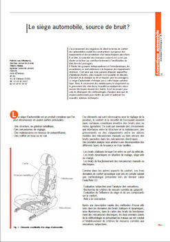 L’accroissement des exigences du client en terme de confort des automobiles conduit les constructeurs à proposer des équipements et des prestations d’un niveau toujours plus élevé. À ce titre, la réduction des émissions sonores est à n’en pas douter un facteur qui contribue fortement à l’amélioration du bien être des passagers. À l’instar des groupes motopropulseurs et l’aérodynamique, les acousticiens se sont intéressés à la bruyance des équipements intérieurs. C’est ainsi que nous pouvons disposer aujourd’hui d’habitacles feutrés, dans lesquels il est possible de discuter, d’écouter de la musique ou de se reposer pour les passagers. Le siège d’automobile n’échappe pas à cette traque systématique. Ainsi, le crissement des matelassures, le claquement ou le grincement des structures, la qualité acoustique des mécanismes électriques doivent être traités. Il est nécessaire pour cela de développer des méthodologies d’analyse ainsi que de moyens performants pour mettre au point et optimiser les nouvelles solutions techniques. -