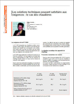 Exigences de la RT 2000. Situation acoustique des appareils de chauffage : présentation standardisée des résultats, de la certification AFNOR et du bonus aux chaudières performantes. -