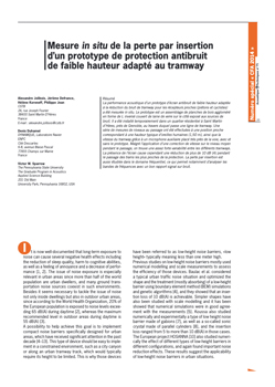 La performance acoustique d’un prototype d’écran antibruit de faible hauteur adaptée à la réduction du bruit de tramway pour les récepteurs proches (piétons et cyclistes) a été mesurée in situ. Le prototype est un assemblage de planches de bois aggloméré en forme de L inversé couvert de laine de verre sur le côté exposé aux sources de bruit. Il a été installé temporairement dans un quartier résidentiel à Saint Martin d’Hères, près de Grenoble, au travers duquel passe une ligne de tramway. Une série de mesures de niveaux au passage ont été effectuées à une position proche correspondant à une hauteur typique d’oreilles humaines (1,50 m), ainsi que la vitesse du tramway grâce à un microphone auxiliaire placé très près de la voie, avec et sans le prototype. Malgré l’application d’une correction de vitesse sur le niveau moyen pendant le passage, on trouve une assez forte variabilité entre les différents tramways. La présence de l’écran cause cependant une réduction de plus de 10 dB (A) pendant le passage des trams les plus proches de la protection. La perte par insertion est aussi étudiée dans le domaine fréquentiel, ce qui permet notamment d’analyser les bandes de fréquences avec un bon rapport signal sur bruit. -