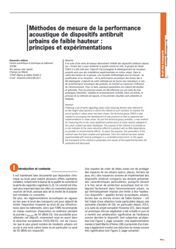 À la suite d’une série de travaux démontrant l’intérêt des dispositifs antibruit urbains (ou « écrans bas ») pour améliorer la qualité sonore en ville, le groupe de travail CNEA-U a été créé avec l’objectif d’accompagner le développement de nouveaux produits ainsi que des installations expérimentales en milieu urbain. Dans le cadre des travaux de ce groupe, une nouvelle méthodologie pour la mesure - en qualification et en réception - de la performance acoustique des écrans bas a été développée. L’objectif de cette méthode est de fournir des indicateurs in situ de la performance acoustique des produits, en limitant au maximum l’influence de l’environnement. Pour ce faire, plusieurs paramètres ont d’abord été étudiés et optimisés. Puis les premiers essais ont été effectués sur une série de trois prototypes industriels, installés en environnement contrôlé. Dans cet article, le principe de la méthode est exposé, et les premiers résultats sont présentés et analysés. -