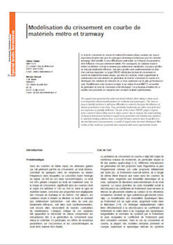 Le bruit de crissement en courbe de matériel ferroviaire urbain constitue une source importante de gêne tant pour les passagers (tramway et métro) que pour les riverains (tramway). Bien identifi é, il reste diffi cilement maîtrisable car il dépend de paramètres dont l’infl uence n’est pas clairement établie. Par conséquent, les solutions visant à réduire ou éliminer ce bruit ne donnent pas entièrement satisfaction, soit parce qu’elles ne sont pas totalement effi caces, soit parce qu’elles sont surdimensionnées et donc d’un coût trop important. Le projet PREDIT «Réduction du bruit de crissement en courbe de matériel ferroviaire urbain», qui vient de s’achever, visait à approfondir la connaissance des mécanismes de génération du bruit de crissement en courbe et à développer des solutions de réduction de ce bruit, optimisées sur le plan performances/ coût. Parallèlement à des mesures en ligne et sur volant d’essai INRETS, un modèle de génération du bruit de crissement a été développé. Les principaux résultats de ce modèle sont présentés et comparés avec certains résultats expérimentaux. -