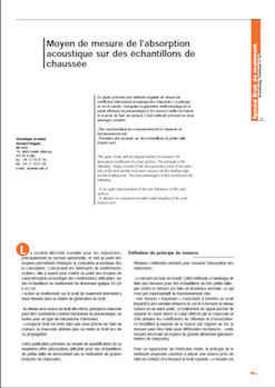 Ce papier présente une méthode originale de mesure du coeffi cient d’absorption acoustique des chaussées. Le principe en est le suivant : marqueter la géométrie réelle (moulage de la partie inférieure du pneumatique) et les sources réelles (à l’entrée et la sortie de l’aire de contact). Cette méthode présente les deux avantages suivants : - Être représentative du comportement de la chaussée en fonctionnement réel, - Permettre des mesures sur des échantillons de petite taille (50x50 cm2). -