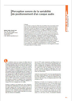 La restitution au casque est utilisée dans de nombreux tests de perception sonore ainsi que dans des applications de spatialisation sonore utilisant les techniques binaurales. De même, les ingénieurs du son utilisent régulièrement des casques pour leurs travaux de prise de son ou de mixage. La problématique de la fidélité de la restitution par les transducteurs a été largement traitée par la littérature. Cependant, la variabilité de positionnement du casque sur la tête de l’auditeur n’est généralement pas prise en compte, bien que des mesures montrent que de légères modifications de la position du casque peuvent engendrer des différences spectrales très importantes. La perception du timbre est susceptible d’être altérée par ces modifications. Cette étude a pour but d’évaluer l’audibilité de ces variations spectrales. Des enregistrements ont été effectués à l’entrée des conduits auditifs d’une tête artificielle sur laquelle différents casques, diffusant de la musique ou du bruit rose, ont été repositionnés plusieurs fois. Un panel d’auditeurs devait ensuite évaluer la similarité entre ces enregistrements présentés sur un casque fixe. La variabilité de positionnement du casque s’est révélée significativement perceptible, l’audibilité étant plus ou moins flagrante en fonction du casque utilisé et du contenu sonore. -