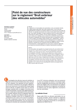 Point de vue des constructeurs sur le règlement “Bruit extérieur des véhicules automobiles”