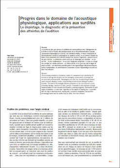 Progrès dans le domaine de l'acoustique physiologique, applications aux surdités. Le dépistage, le diagnostic et la prévention des atteintes de l'audition