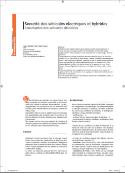 L’évolution de la mobilité urbaine depuis plusieurs années (augmentation des 2 roues, évolution des transports publics et électrification des véhicules) change progressivement notre perception et notre comportement en tant qu’usager des voies publiques. L’augmentation du nombre de véhicules silencieux permet de réduire les nuisances sonores dues au trafic routier en zone urbaine. Toutefois, ce bénéfice environnemental positif a une conséquence imprévue. Supprimer le bruit du moteur thermique à basse vitesse peut entraîner des risques supplémentaires pour les utilisateurs des voies urbaines (piétons, cyclistes, etc) dans la mesure où les usagers des routes et des trottoirs anticipent l’approche, la présence ou le départ des véhicules grâce à leurs bruits. Différentes solutions sont envisagées pour prévenir ces risques et les travaux de réglementation et de normalisation en cours préparent notamment à l’introduction de dispositifs de sonorisation. Cet article traite des risques liés aux véhicules silencieux et considère entre autres, la sonorisation de ces véhicules. -