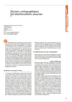 "L'interférométrie est une technique qui prend une place de plus en plus importante dans les applications sonars et en particulier pour les sonars cartographiques. Ceci s’explique par la simplicité de mise en œuvre de cette technique et le gain de précision qu’elle apporte. Cet article propose d’analyser les fonctionnements de différents types de sonars cartographiques, en particulier les sonars latéraux et multifaisceaux. Dans un premier temps sont analysés les fonctionnements spécifiques de ceux-ci, en mode classique puis en mode interférométrique. Si cette technique s’adapte très bien à ces appareils de télédétection, le traitement des données nécessite quelques précautions avant de pouvoir reconstruire de manière tridimensionnelle, l’environnement du fond sous-marin. Ces précautions concernent les hypothèses de base à respecter ainsi que la prise en considération de l’impact du bruit sur la qualité de la phase interférométrique. En définitive, l’interférométrie reste une technique simple qui permet d’accroître les performances des outils de télédétection sous-marine." -