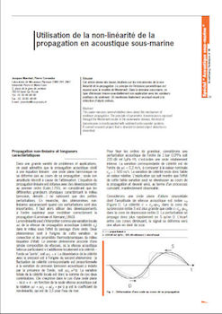 Cet article donne des bases intuitives sur les mécanismes de la nonlinéarité de la propagation. Le principe de l’émission paramétrique est exposé avec le modèle de Westervelt. Dans le domaine sous-marin, ce type d’émission trouve essentiellement son application avec les sondeurs profi leurs de sédiment. On mentionne fi nalement un projet visant à la détection d’objets enfouis. -