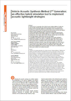 Vehicle Acoustic Synthesis Method 2nd Generation: an effective hybrid simulation tool to implement acoustic lightweight strategies