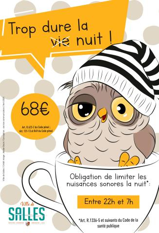 Cette campagne d’affichage arbore les quatre coins de la commune de Salles. Son objectif ? Sensibiliser les Sallois à la lutte contre les incivilités. Les nuisances sonores constitue l'un des thèmes abordés par cette première campagne. -