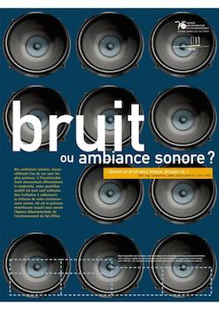 Sur la thématique de la sensibilisation à l’environnement sonore, cette exposition composée de 23 panneaux ( 80 x 120 cm) munis d’œillets d’accrochage a été réalisée par le CidB en 2002 à destination des collégiens, lycéens et du grand public. Ces panneaux présentent de manière synthétique et attrayante l’essentiel à connaître sur la prévention et la lutte contre les nuisances sonores, les principes de la propagation et de perception des sons, la notion de qualité des ambiances sonores, les progrès techniques récents, etc. L’exposition s’articule autour de deux modules. Un volet pédagogique destiné à la compréhension des phénomènes liés au son, au mécanisme de l’audition et à la perception du bruit, ainsi qu’un volet pratique déclinant des réponses concrètes aux problèmes de nuisance sonore (bruits de voisinage, bruits des transports terrestres, bruit des avions, …). Prolongement ludique de l’exposition, un jeu de devinette se propose, sur chacun des panneaux, de faire tomber le voile sur un certain nombre d’idées reçues et faits marquants ayant trait au bruit. Pour connaître les conditions d’emprunt de l’exposition, veuillez contacter le CidB. -