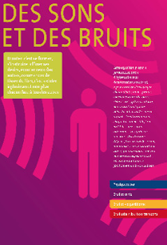 Sur la thématique de la sensibilisation à l’environnement sonore, cette exposition composée de 24 panneaux (80 x 120 cm) munis d’œillets d’accrochage a été réalisée par le CidB et le Conseil départemental de Seine-Saint-Denis en 2010 à destination des collégiens, lycéens et du grand public. Ces panneaux sont construits autour de quatre modules : Module 1 : la physique du son : les notions de base essentielles pour une bonne compréhension de ce qu’est le bruit ; Module 2 : bruit et santé : les effets auditifs et extra-auditifs ; Module 3 : bruit et vie quotidienne : les bruits de voisinage ; l’isolation acoustique des logements ; Module 4 : bruit urbain, bruit des transports : la directive européenne, la carte départementale de bruit, les mesures pour réduire et prévenir le bruit des transports. Deux lots de 12 panneaux peuvent s’emprunter à la carte, indépendamment de l’ensemble de l’exposition. Pour connaître les conditions d'emprunt, veuillez contacter le CidB. -