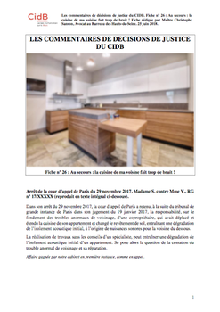 Dans son arrêt du 29 novembre 2017, la cour d’appel de Paris a retenu, à la suite du tribunal de grande instance de Paris dans son jugement du 19 janvier 2017, la responsabilité, sur le fondement des troubles anormaux de voisinage, d’une copropriétaire, qui avait déplacé et étendu la cuisine de son appartement et changé le revêtement de sol, entraînant une dégradation de l’isolement acoustique initial, à l’origine de nuisances sonores pour la voisine du dessous. Christophe Sanson, avocat au Barreau des Hauts-de-Seine, a rédigé une nouvelle fiche de décision de justice commentée sur ce thème. -