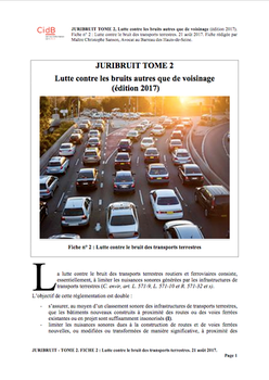 Dans cette fiche rédigée par Maître Christophe Sanson, Avocat au Barreau des Hauts-de-Seine, il s’agit de traiter de la plupart des questions relatives à la lutte contre le bruit des transports terrestres. D’autres questions comme la résorption des points noirs du bruit ou encore la prévention et de la répression du bruit généré par les véhicules motorisés feront l’objet de fiches séparées ultérieurement. -