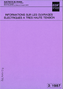 Explication des bruits radioélectriques et acoustiques dus à l'effet couronné provoqué par le champ électrique intense autour des câbles d'une ligne électrique à très haute tension et échelle de bruit selon différents thèmes: procédures de construction des ouvrages de transport, protection des personnes et des biens et l'agriculture. Tableau présentant les indemnités propriétaires et exploitants en 1987. Dispositions fiscales applicables aux ouvrages de transport. -